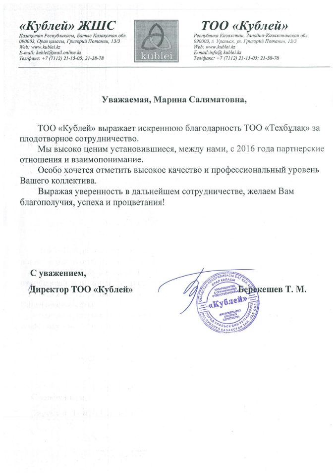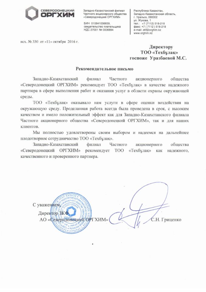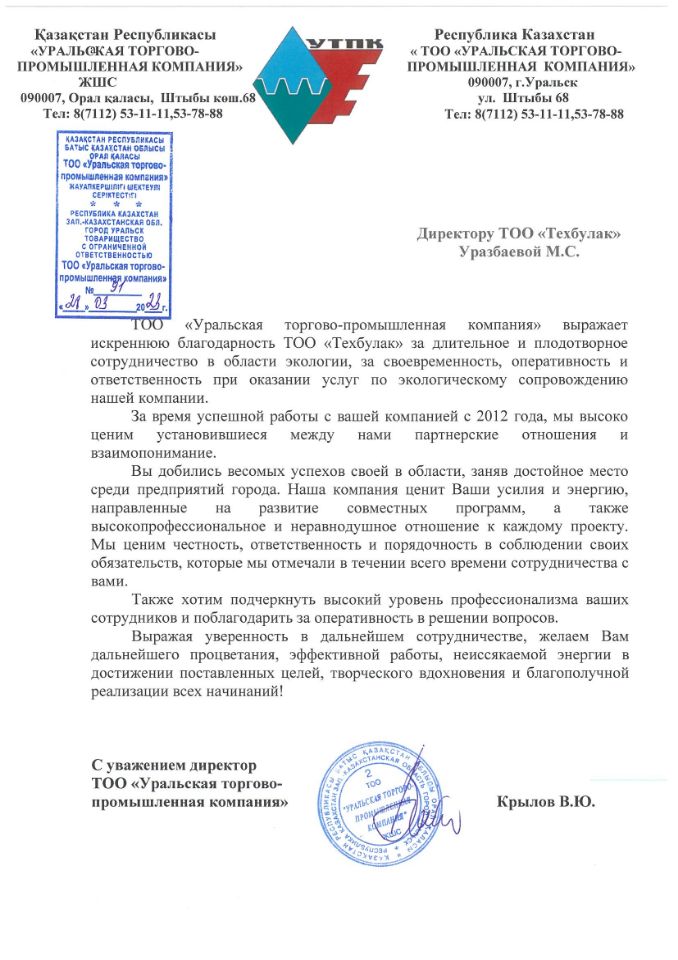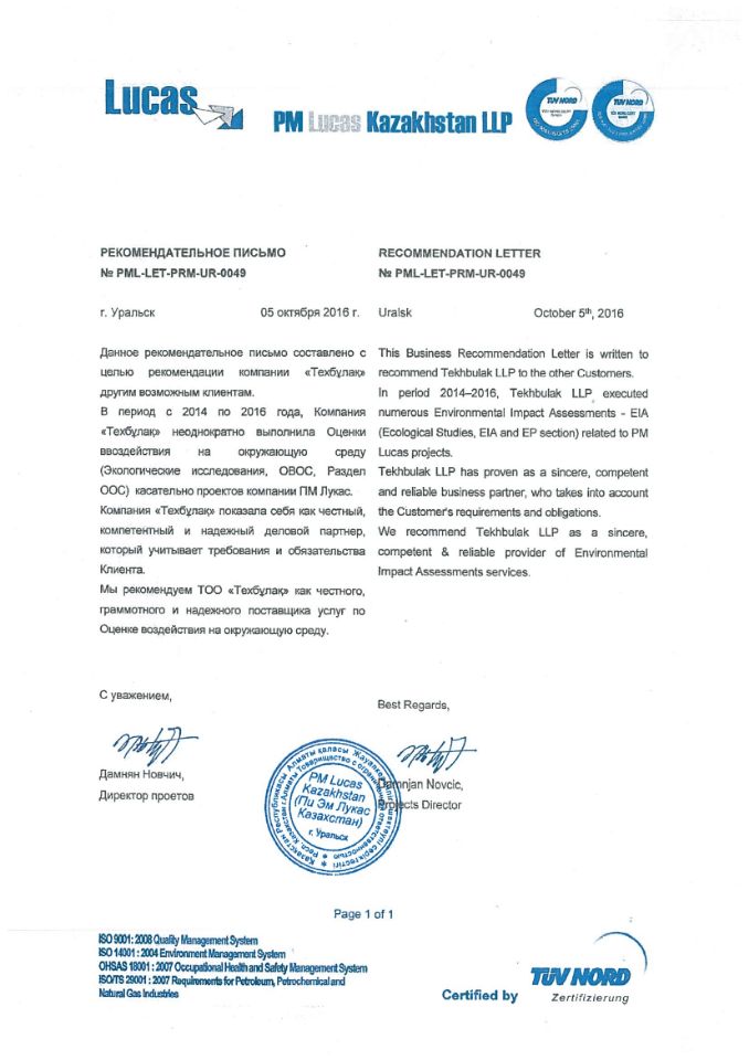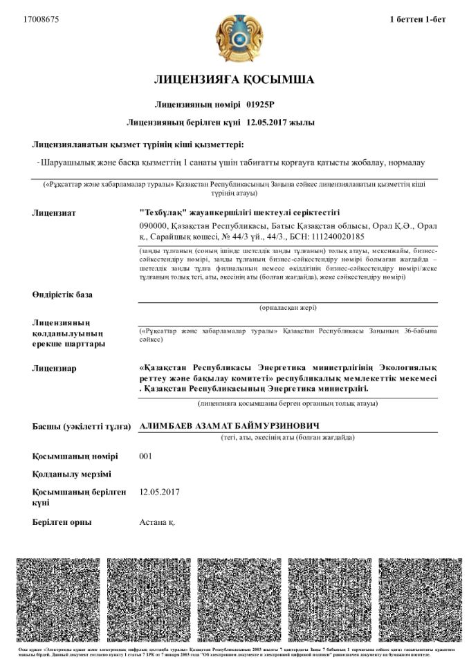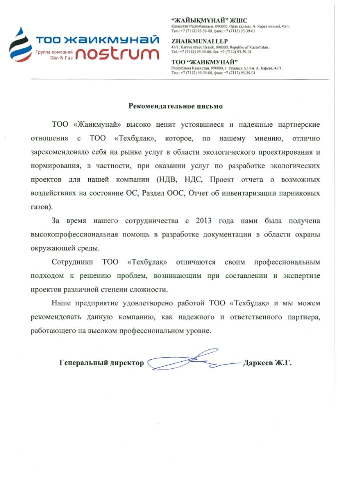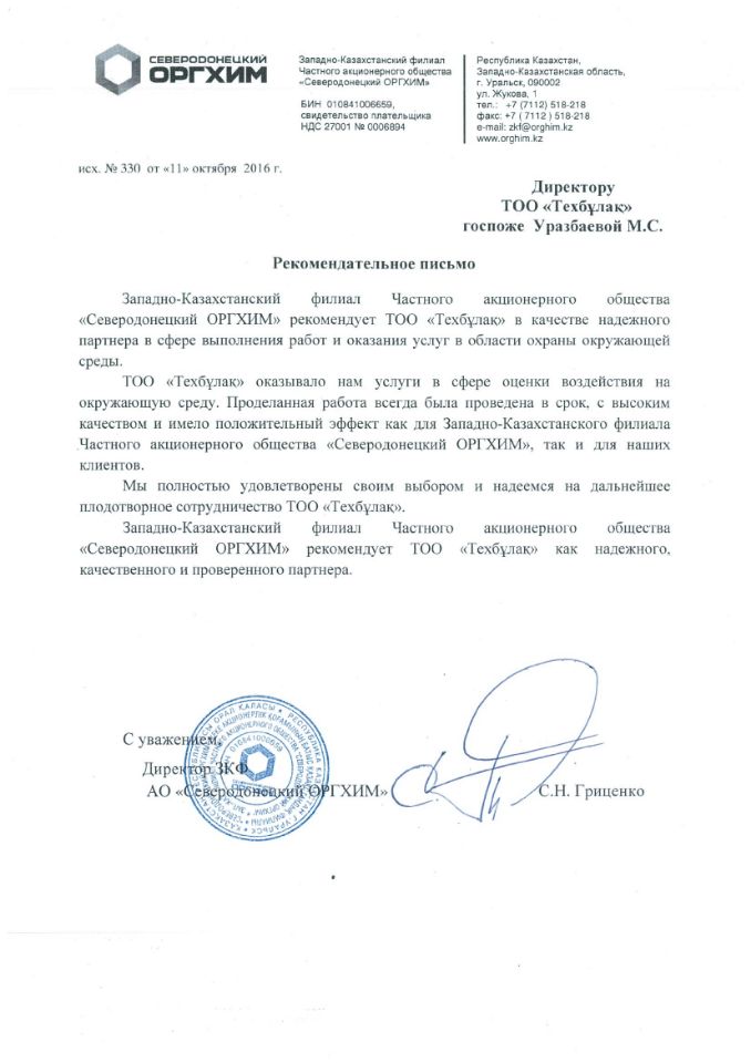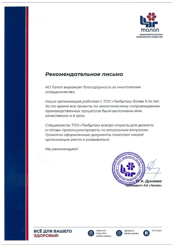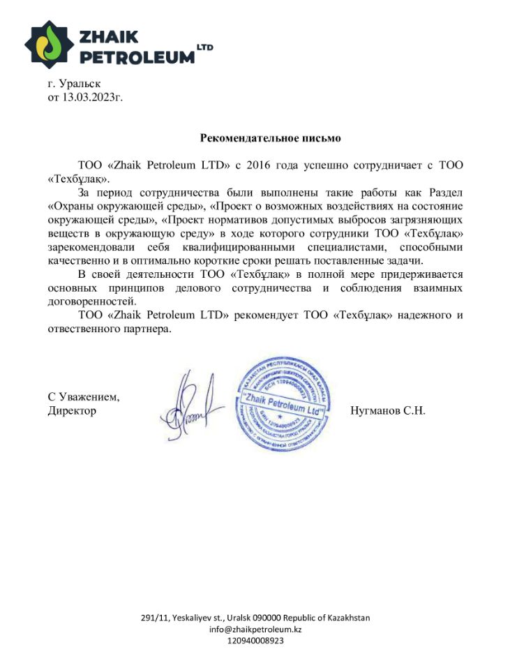 ТОО «Техбұлақ» ценит своих Заказчиков и ответственно относится к выпускаемым проектам, поэтому в период действия разработанной и согласованной уполномоченным органом документации, специалисты ТОО «Техбұлақ» при необходимости консультируют представителей Заказчика по разработанной документации.