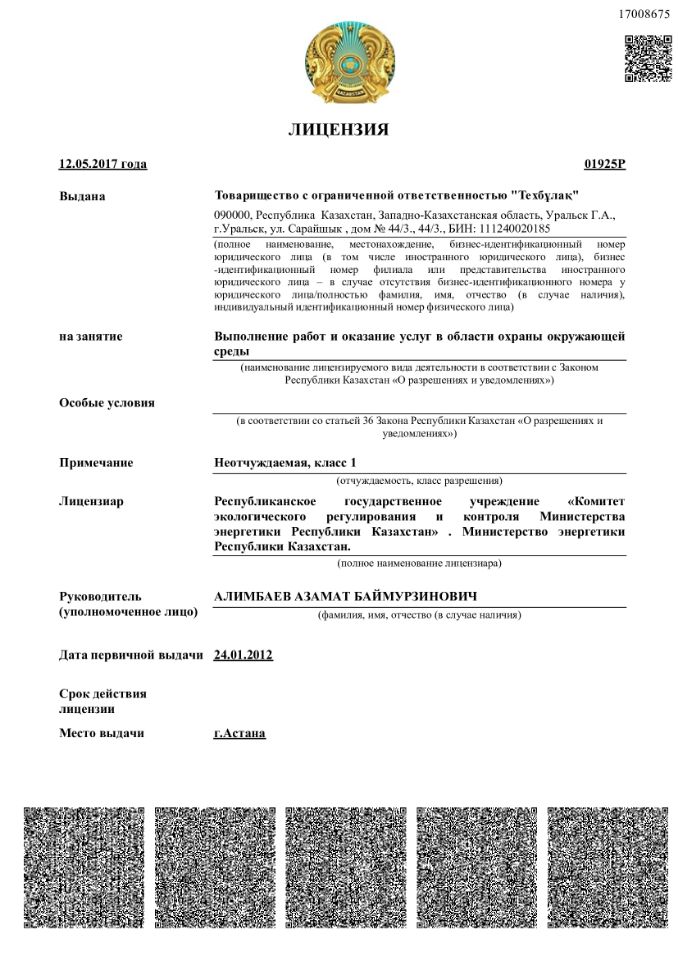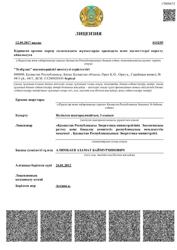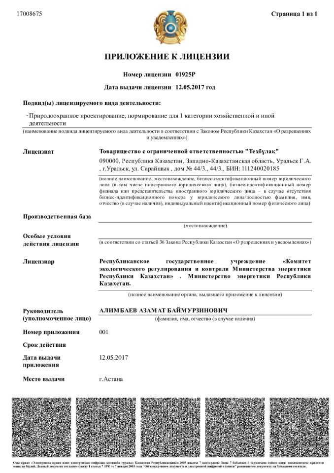 Разработка проектов осуществляется с соблюдением Экологического кодекса Республики Казахстан, а также иных действующих нормативных и законодательных актов, действующих на территории Республики Казахстан.