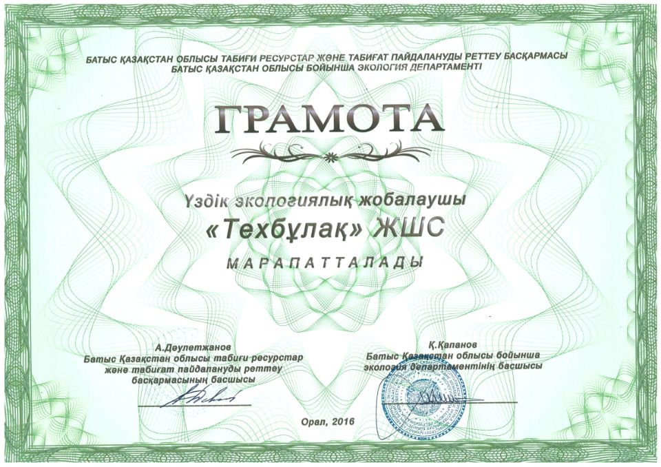 Товарищество с ограниченной ответственностью «Техбұлақ» образовано 29 декабря 2011 года.